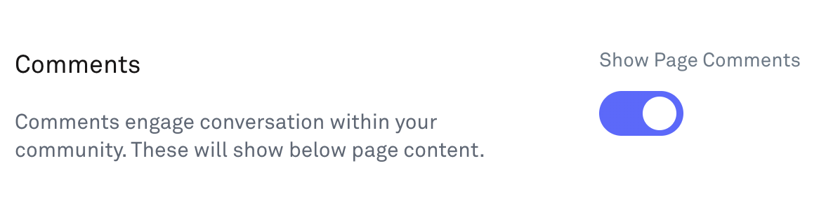 Use the toggle to enable or disable a comments feed on your content page. We recommend turning comments on — it's a great way to spark conversation and keep your members engaged with your content.