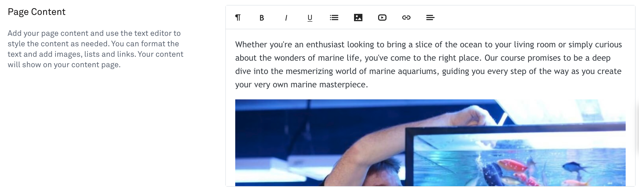 Use the built-in editor to create your page content.