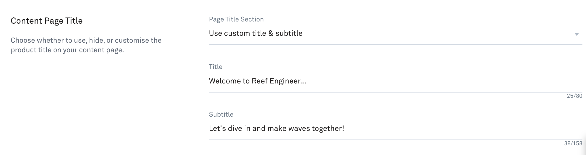 Add a title to your content page and use the dropdown to control how it is displayed. Your options are: