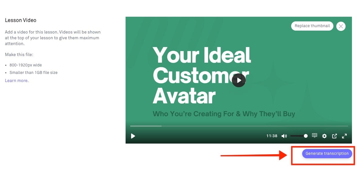 You can also generate a transcription file for your lesson video.